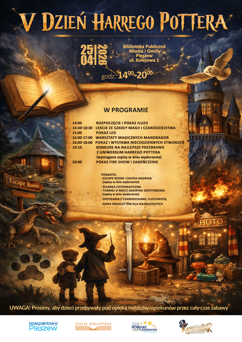 Biblioteka Publiczna Miasta i Gminy w Pleszewie zaprasza mieszkańców do świata magii i czarodziejstwa. V Dzień Harry’ego Pottera odbędzie się w sobotę, 25 kwietnia, w godzinach 14:00–20:00.